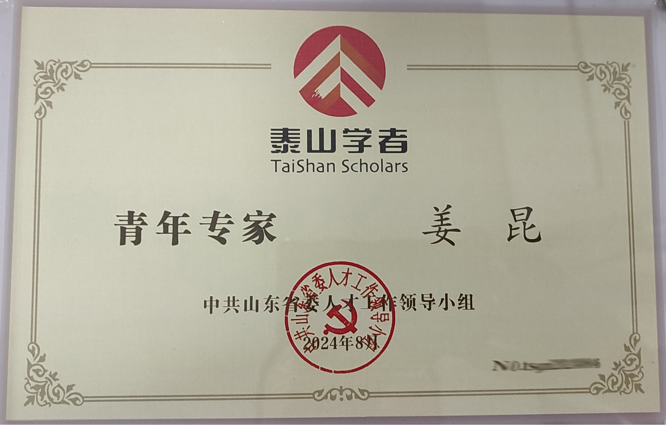 祝贺姜昆研究员获聘山东省泰山学者青年专家